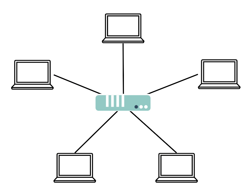 중앙에 있는 노드에 모두 연결된 네트워크 구성